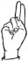 На ћирилици написано ДУШИЦА КЛЕМЕНОВИЋ састоји се из 16 слова [?]. Исписано ћириличном једноручном азбуком за глувонеме: